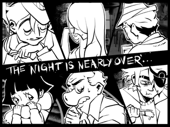 Right from the bat, this game already reminds me alot of Midnight on the Milky Way, through its colourful cast, somber yet optimistic atmosphere, and the very snazzy soundtracks. So, it's safe to say, I'm pleasantly surprised when I found out you're the CREATOR for both of these games. Thank you so much for making such wonderful games and short stories.